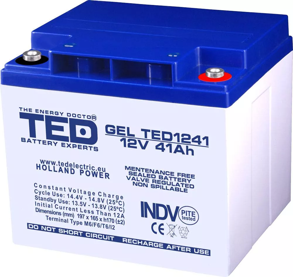 Acumulator 12V 41A GEL AGM VRLA 197x165x171mm M6 TED Battery ExpertHolland.