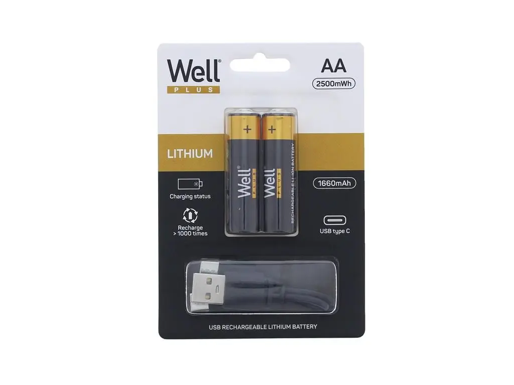 Acumulator AA R6 Li-ion 14500 1.5V 1660mAh 2500mWh cu incarcare 5V USB-C 2buc/blister Well ACCU-14500/166C-BL2-WL