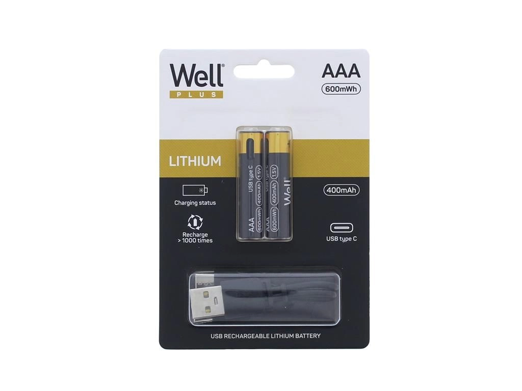 Acumulator AAA R3 Li-ion 10440 1.5V 400mAh 600mWh cu incarcare 5V USB-C 2buc/blister Well ACCU-10440/40C-BL2-WL.
