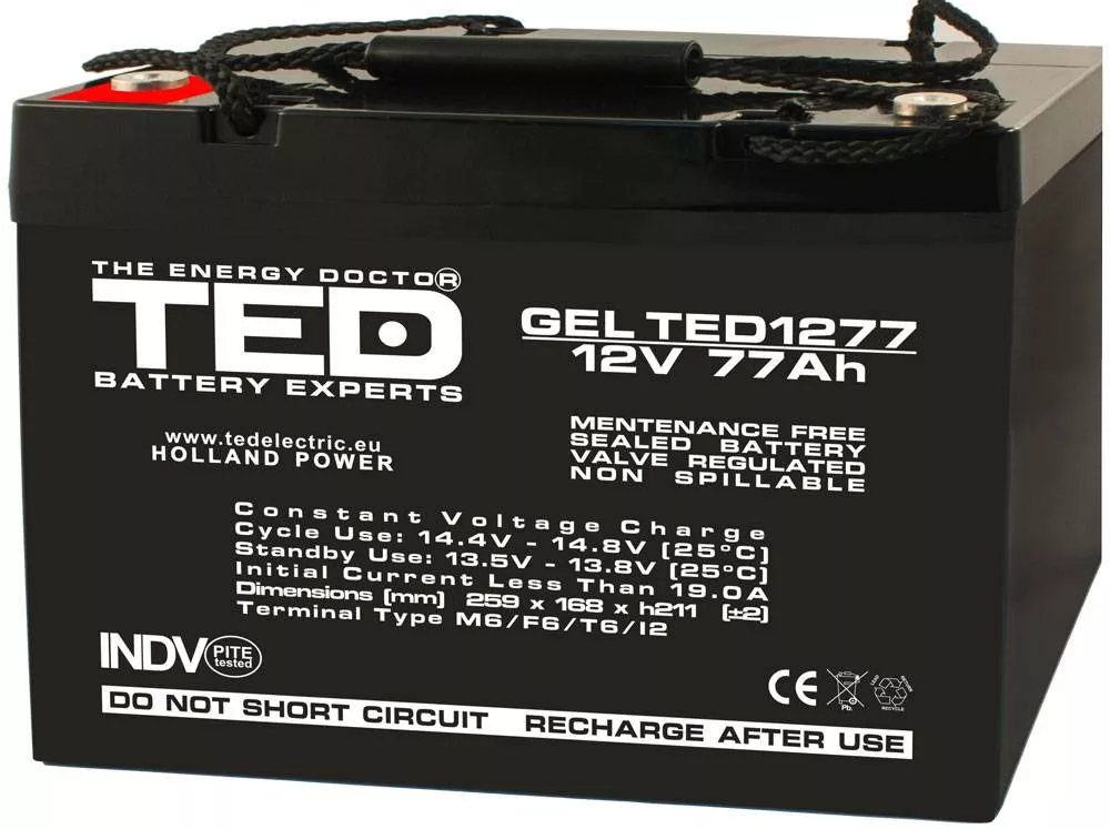 Acumulator AGM VRLA 12V 77A GEL dimensiuni 260x167xh210mm M6 TED Battery Expert.