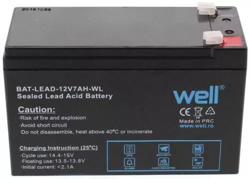 Acumulator plumb acid 12V 7Ah cu terminal F1 (4.8mm), marca Well.