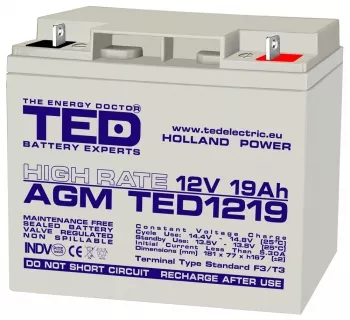 Baterie AGM TED1219HRF3 12V 19Ah Rată mare de descarcare.