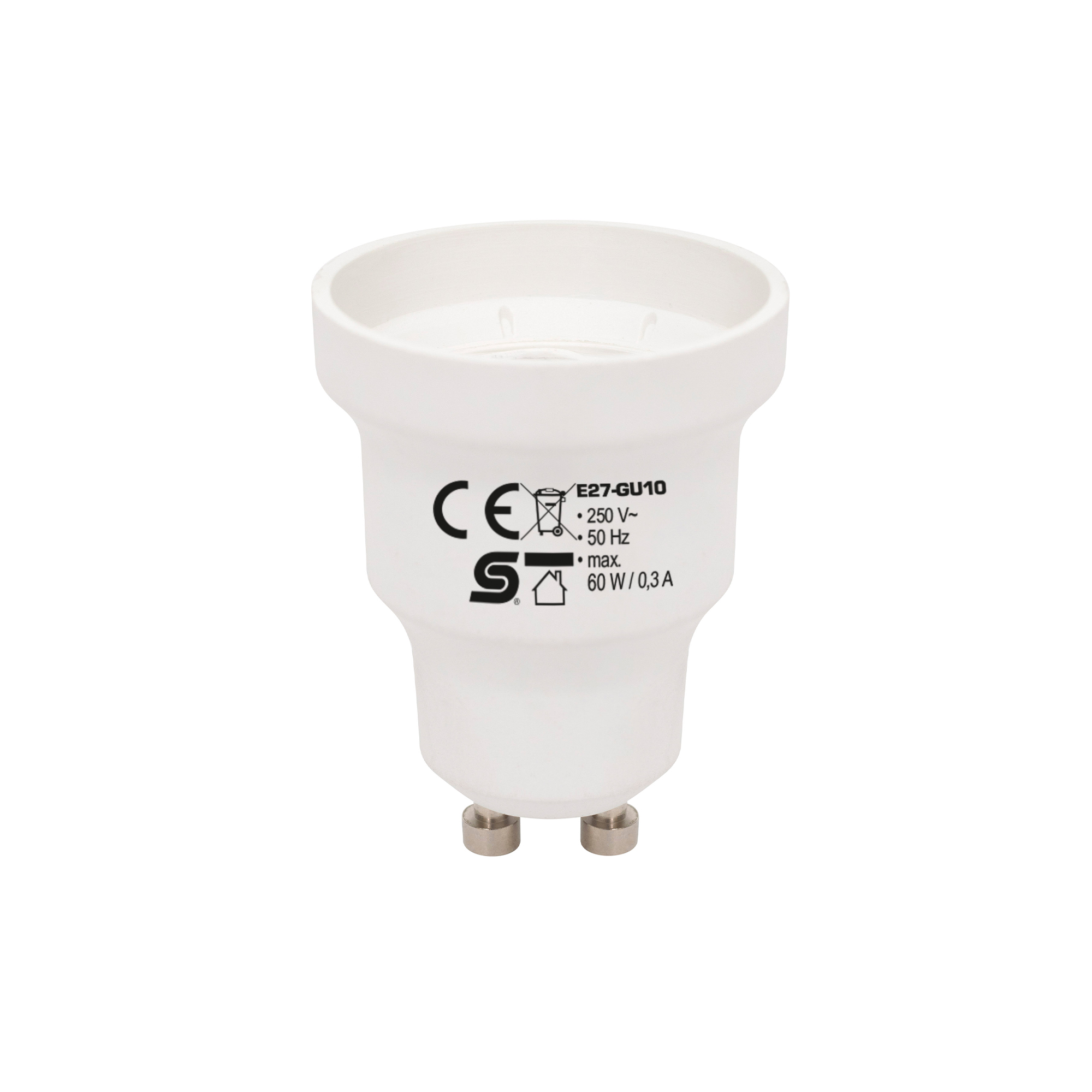 • Oferă posibilitatea de a folosi becuri cu dulie E27 într-un soclu GU10.