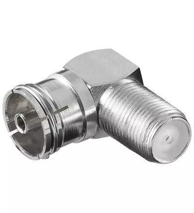 F la Coaxial 90° IEC 9.5 mm, adaptor F mama la Coaxial 90° mama (IEC 9.5mm) versiune din metal.