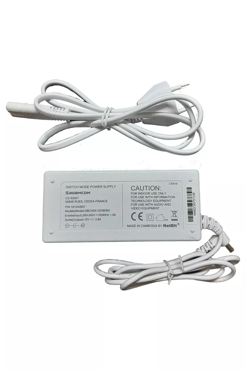 Cantitate Alimentator 200-240V - 12V 3.8A cu mufa 5.5x2.5 mm alb cu cablu de alimentare (507) NBC45A120380M2