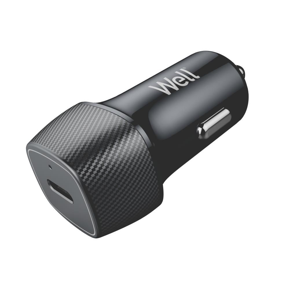 Alimentator USB TYPE C la bricheta auto, 1 iesire 20W negru Well.