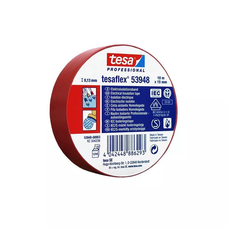 Banda izolatoare Tesaflex, 10 m, culoare rosie.