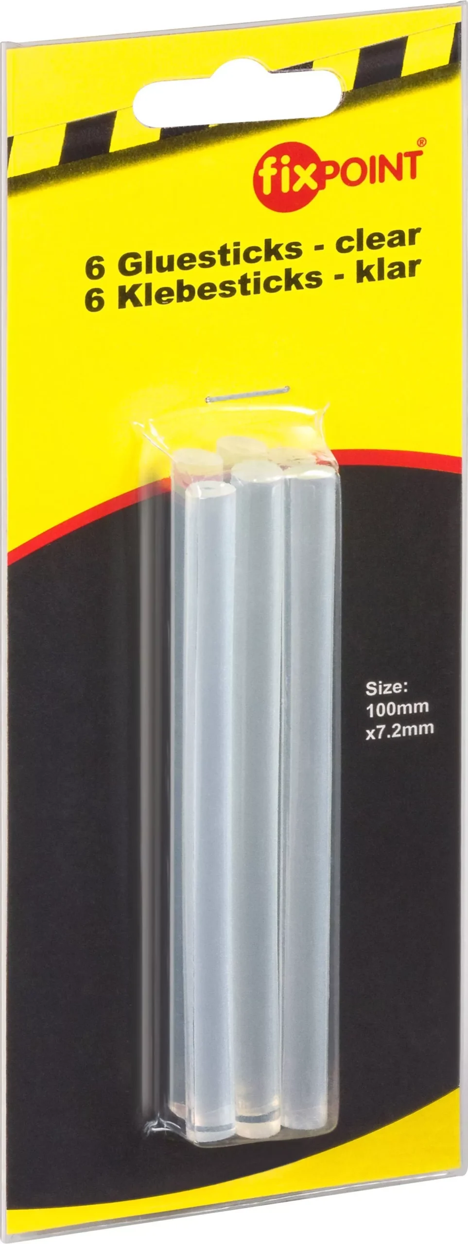 Accesoriu pentru pistolul de lipit cu plastic. 6 bucati bastoane de clei 7.2 mm diametru, 10 cm lungime. Marca Fixpoint Germania.