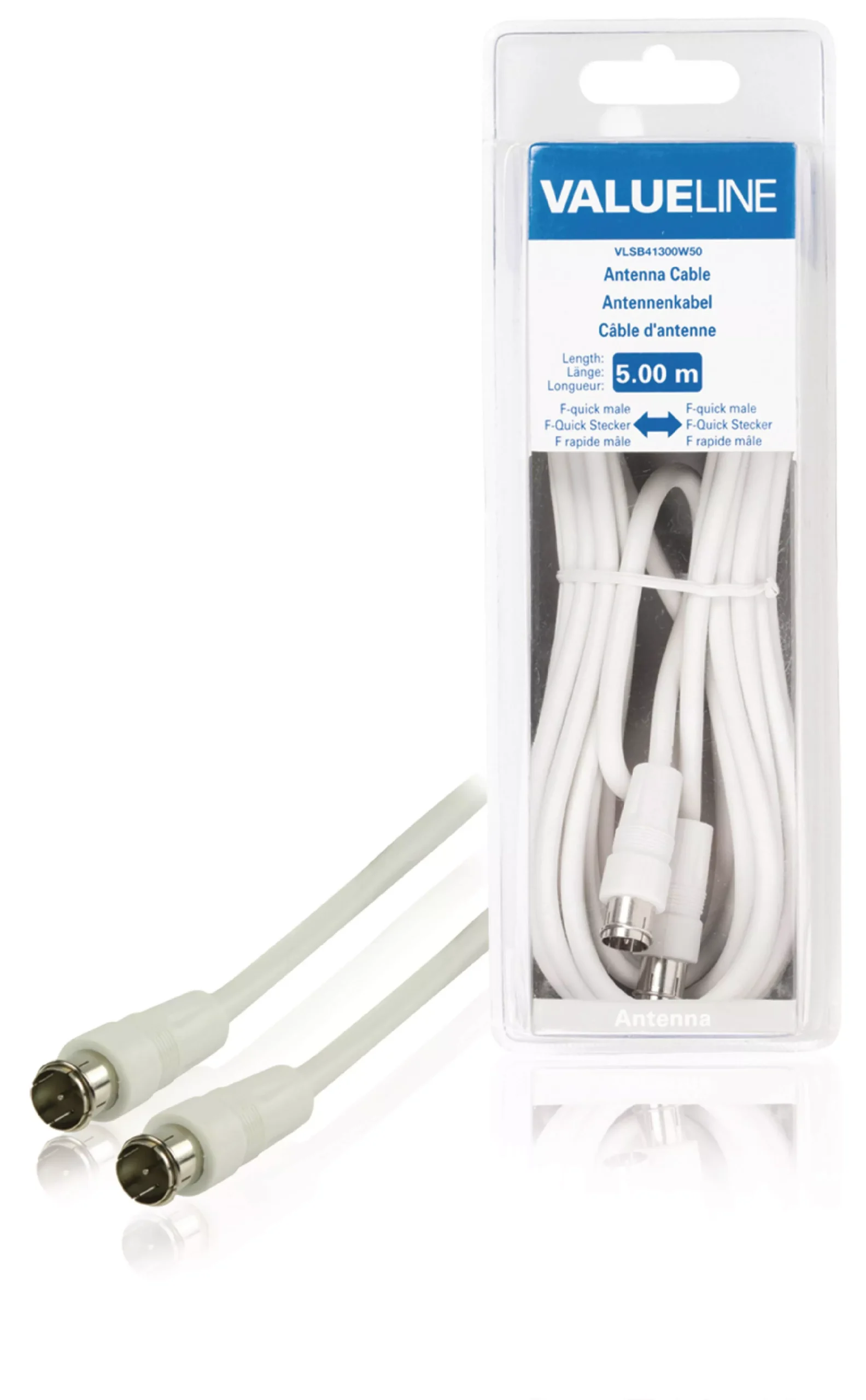Cablu antena F tata rapida fara infiletare – F tata rapida fara filetare 5m alb VALUELINE.