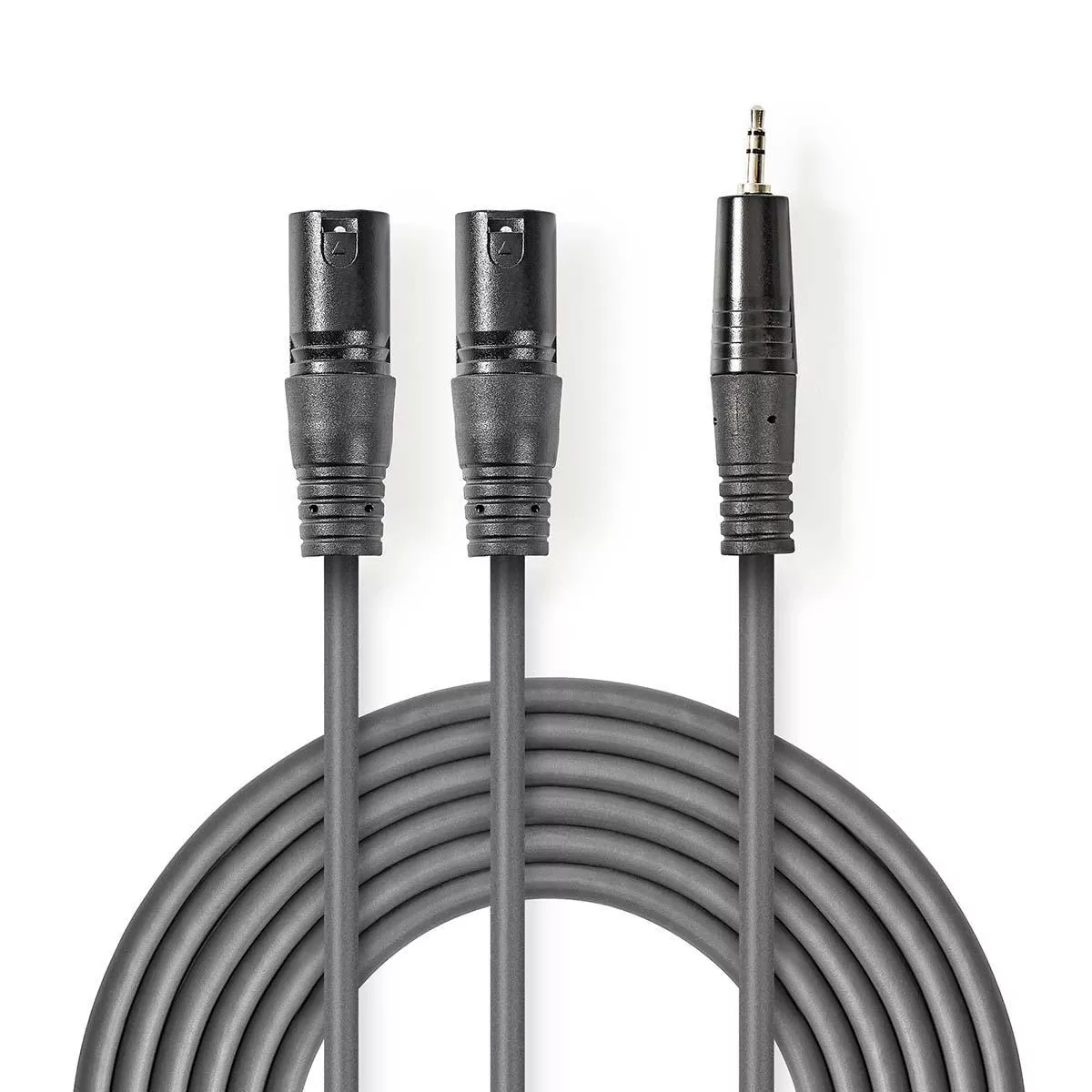 2x XLR cu 3 pini tată | 3,5 mm tată | Nichelat | 1,50 m | Rotund | PVC | Gri închis | Manșon de carton.