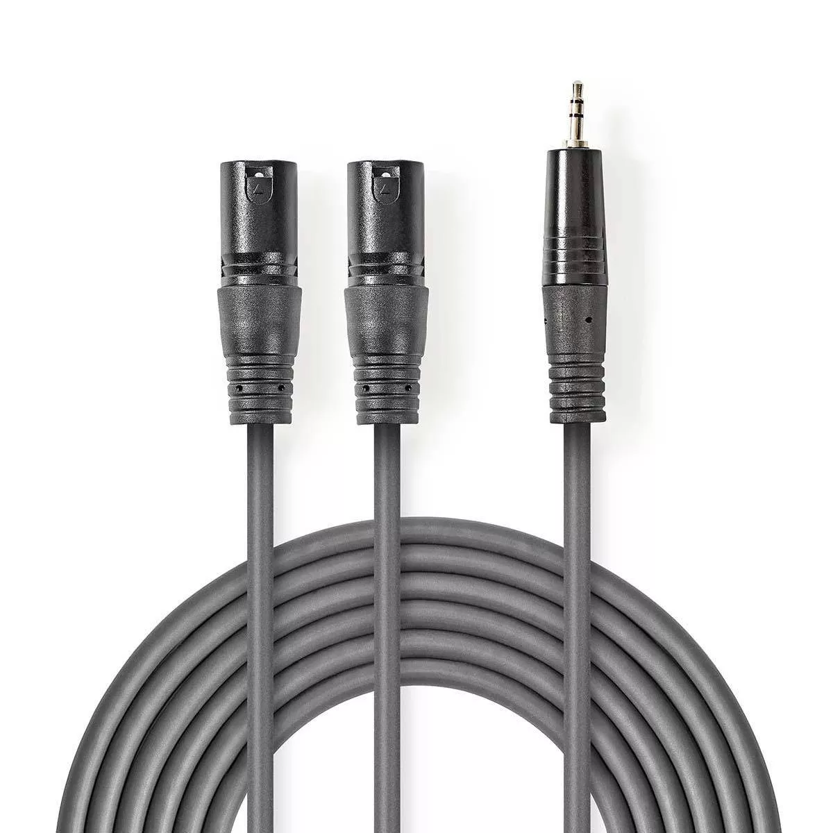 Cablu audio Stereo 2x XLR 3 Pini tata – Jack 3.5mm tata 3m gri Nedis.