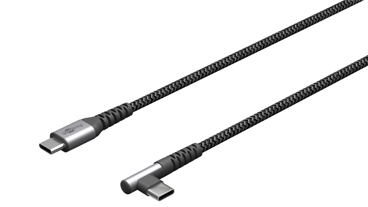 Cablu elegant extra-robust textil USB2.0 type C 90 grade – USB type C 2m 60W mufe metalice Goobay 64660.