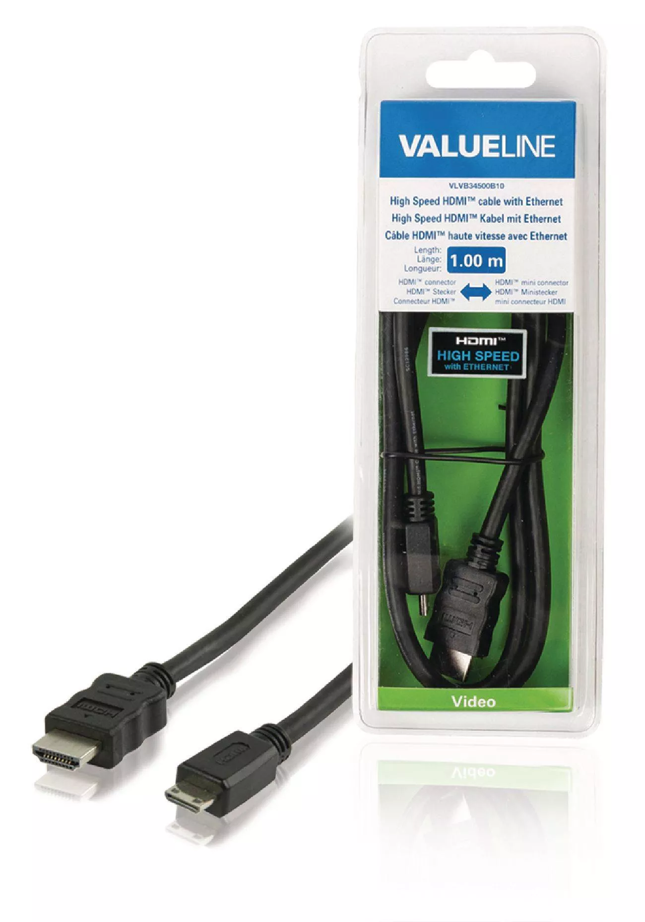 Cablu HDMI 4K de mare viteza cu Ethernet HDMI – mini HDMI 1m negru Valueline.