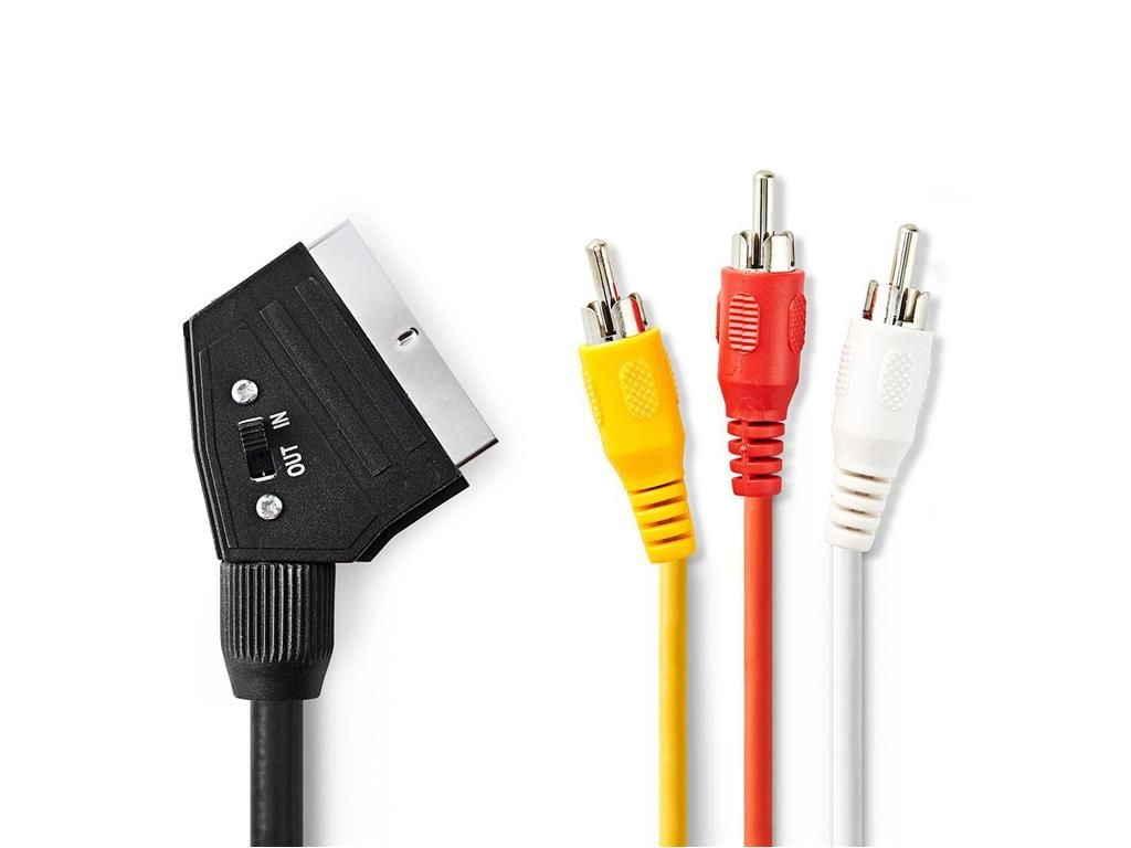 Cablu SCART – 3x RCA tata 2m negru CVGT31130BK20 Nedis, EAN 5412810325474.