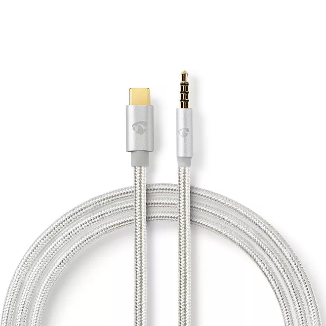 Cablu USB TYPE C tata – Jack 3.5 mm tata 1m cupru OFC aurit argintiu Nedis.