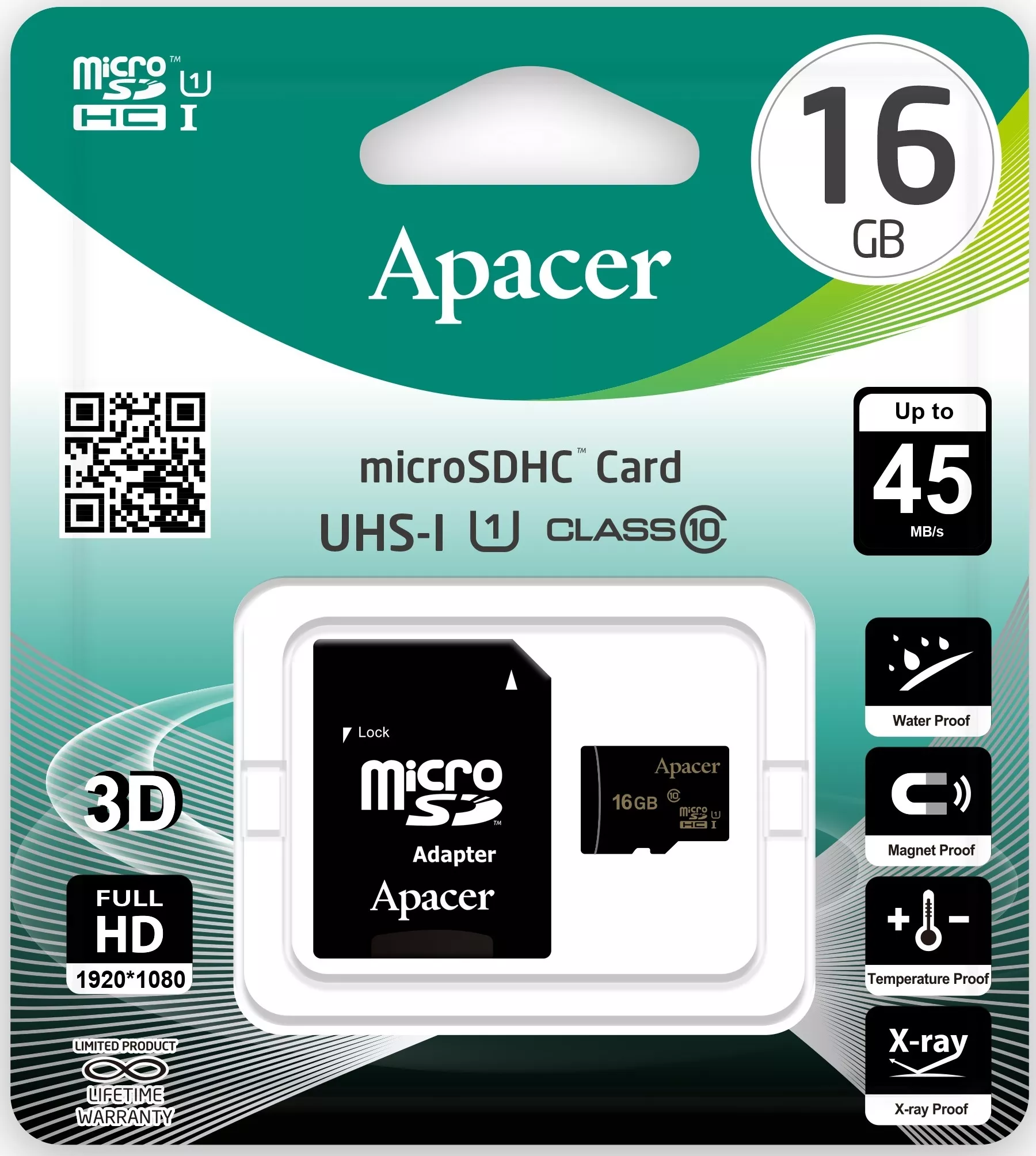 Card micro SDHC UHS-I 16 GB clasa 10 cu adaptor SD Apacer.