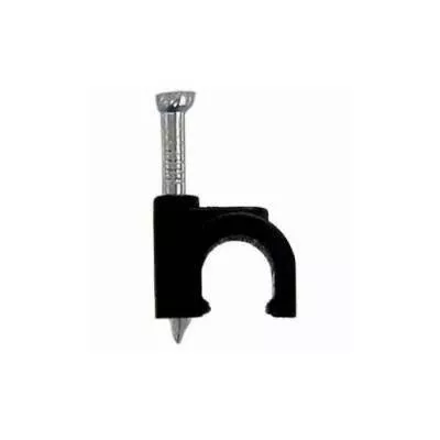 Cleme clips fixare cablu rotund plastic cu cui 6mm negru 100buc Well.