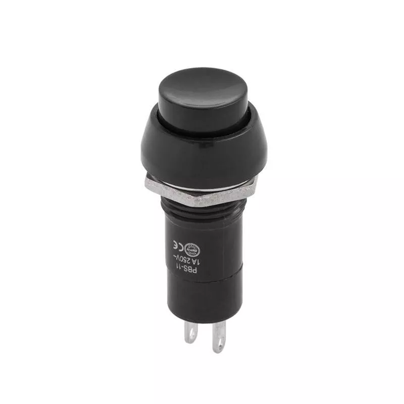 Intrerupator cu retinere prin apasare, rotund, 1A 230VAC, culoare neagra.