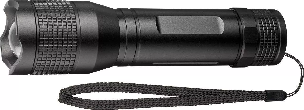 carcasa din aluminiu rezistent la coroziune si cureaua de mana practica,