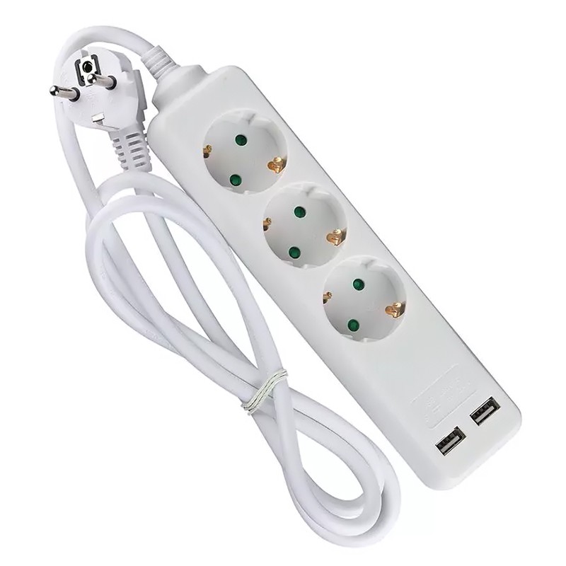 Prelungitor cu 3 cai, 2 porturi USB, cablu 3 x 1.5 mm2, lungime 1.5 m