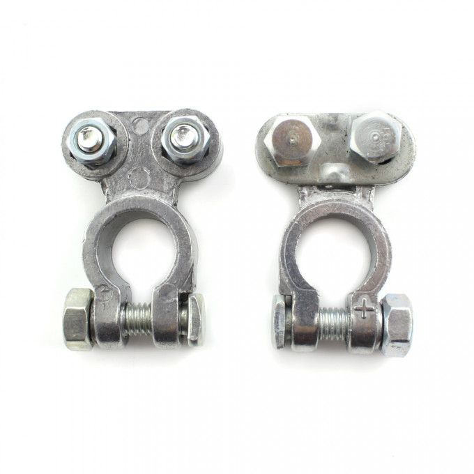 Borne pentru acumulator foarte rezistente în timp. Garantat, rezistivitate de transfer redusă și calitate înaltă a materialelor compozite. Oferă o strangere mecanică fermă – fără a deteriora bornele de plumb ale bateriei.