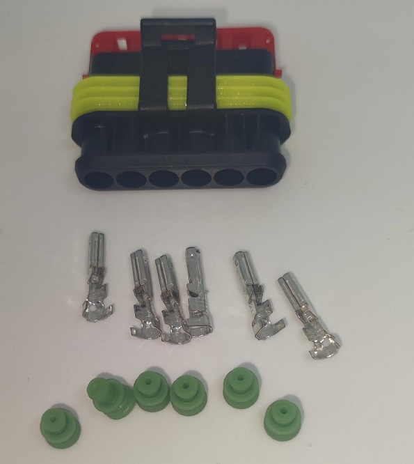 Set conector cablu Superseal 1.5 mama mufa 6 pin 6 pini inclusi + 6 garnituri incluse IP67 TE Connectivity 282090-1-SET-F.