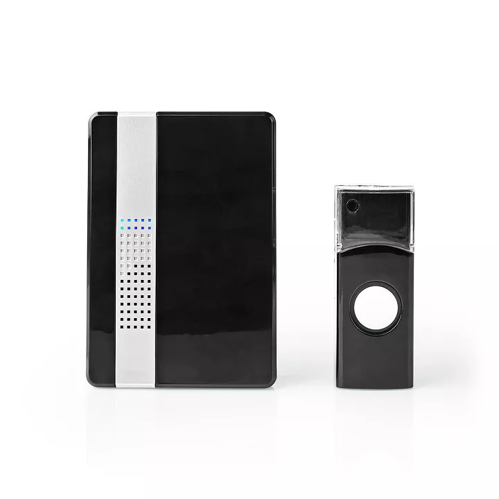 Set de sonerie fără fir Alimentat la retea | 220 – 240 V AC 50 Hz | 1x CR2032 | Baterii incluse | Volum: 80 dB | Raza semnalului: 300 m | IP44 | Volum reglabil | 36 Melodii | 1 Receptor | Negru.