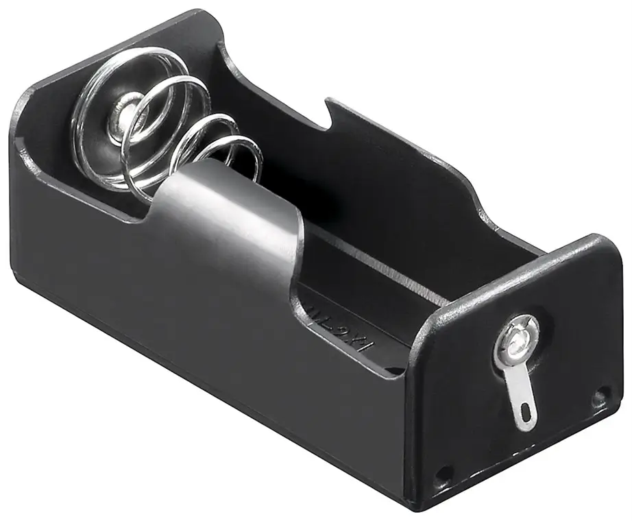 1 baterie de tip C poate fi introdusă în carcasa deschisă din plastic negru.