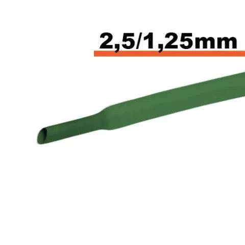 Tub termocontractabil Verde 2.5/1.25mm 0.5 metri, temperatura 125 grade Celsius VW-1 600V,